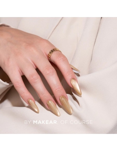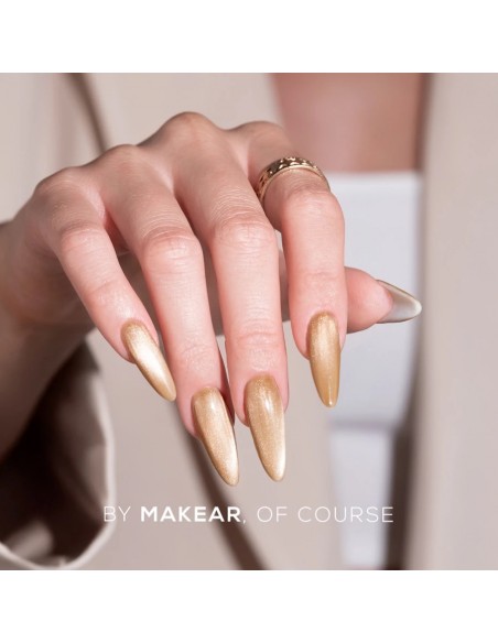 Brun Cat Eye hybrid gel polish fra Makear er høstens must-have manikyrfarge, med en unik magnetisk «cat eye»-effekt. Takket være magnetreaktive partikler kan du oppnå en 3D-glød som gir dybde og originalitet til ethvert negledesign.