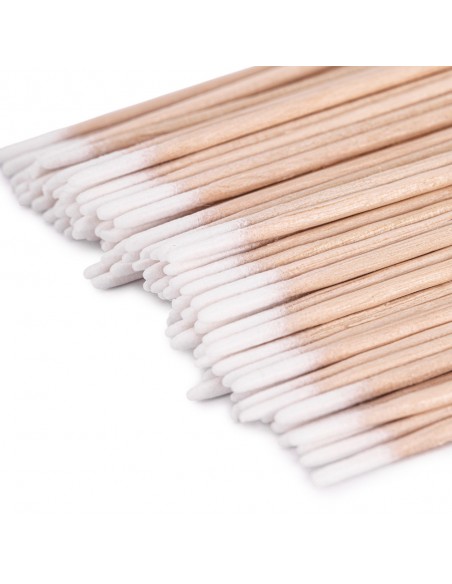 Disse bomullspinnene i tre med myk spiss kan brukes til manikyr, pedikyr, styling av øyenbryn, vipper og sminke.