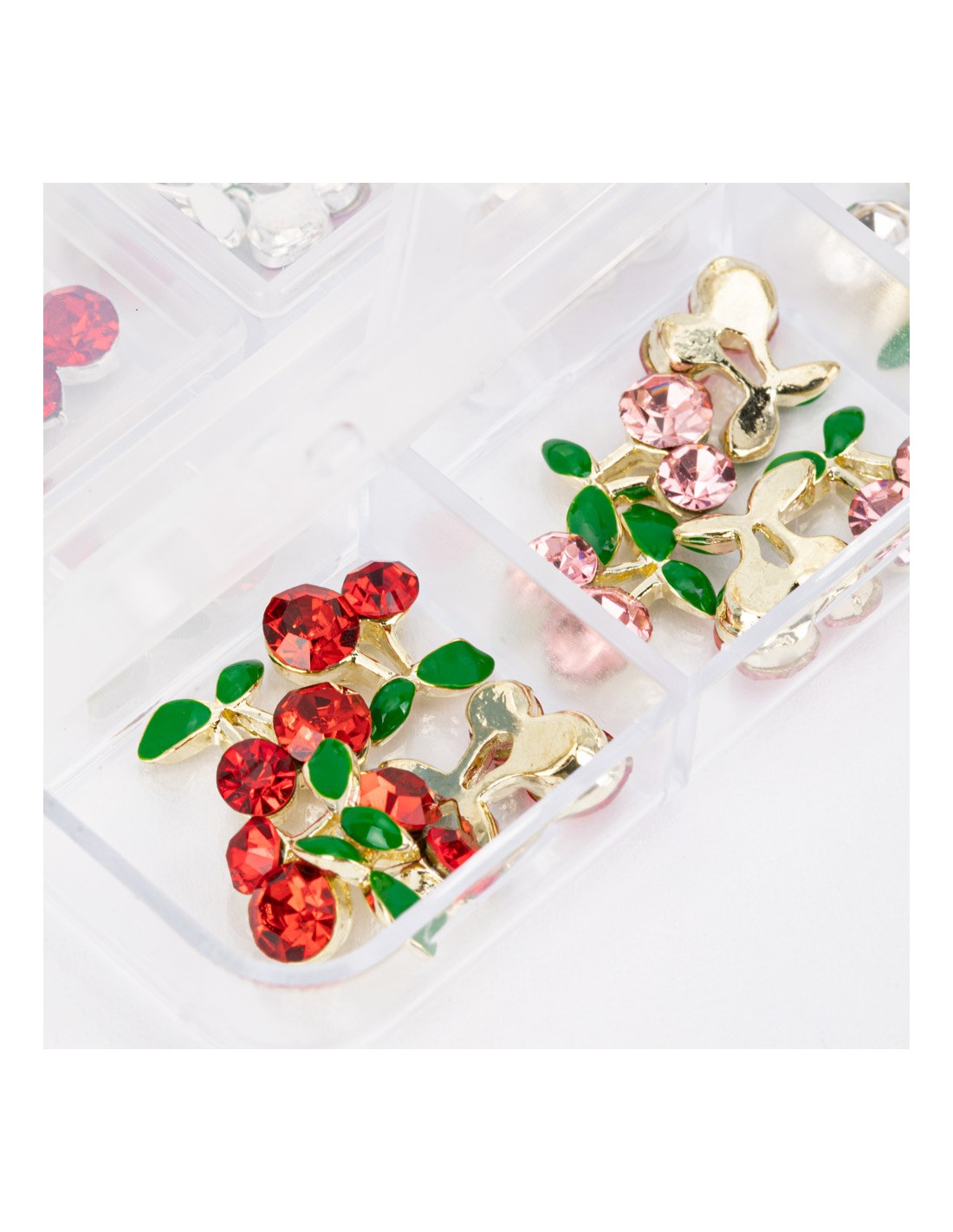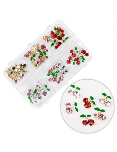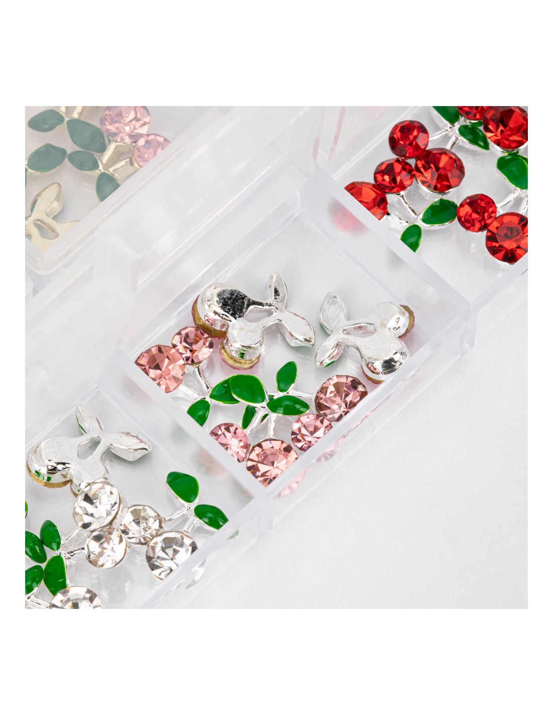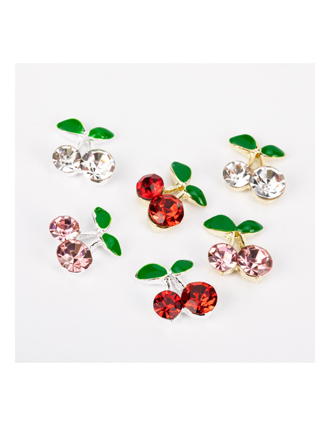 Kirsebær med strass til negledekorasjon, eske, fargemiks, 30 stk.