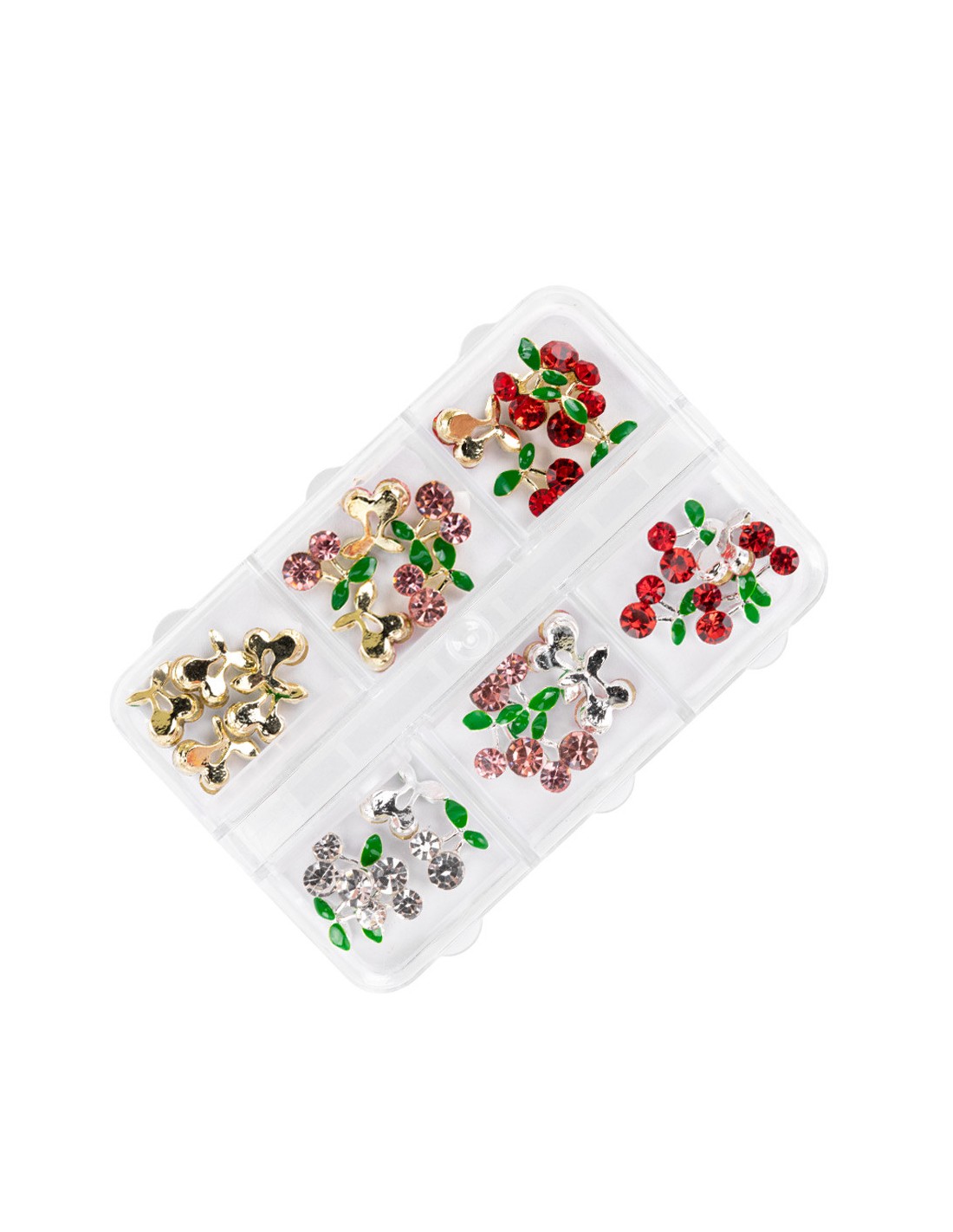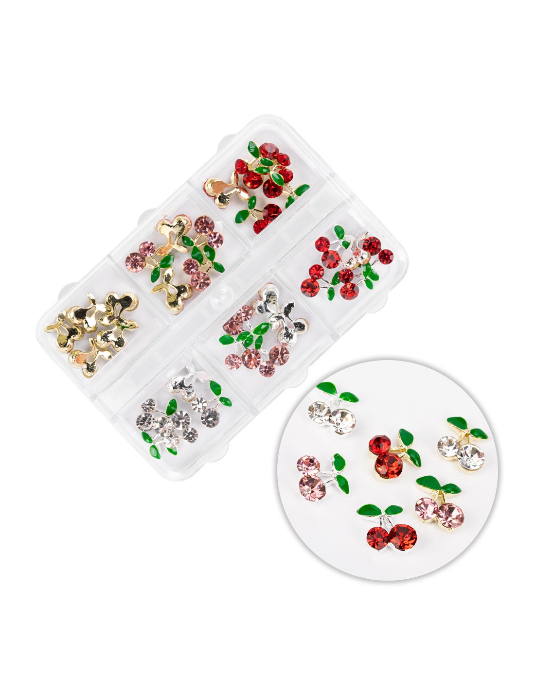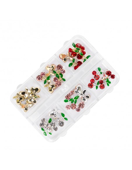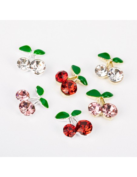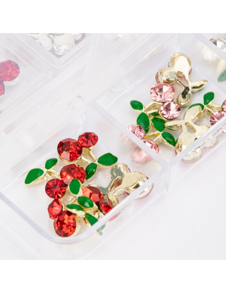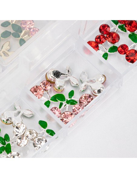 Kirsebær med strass til negledekorasjon, eske, fargemiks, 30 stk.