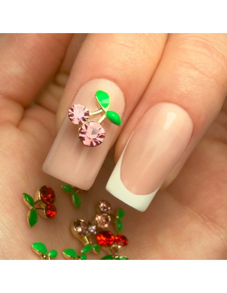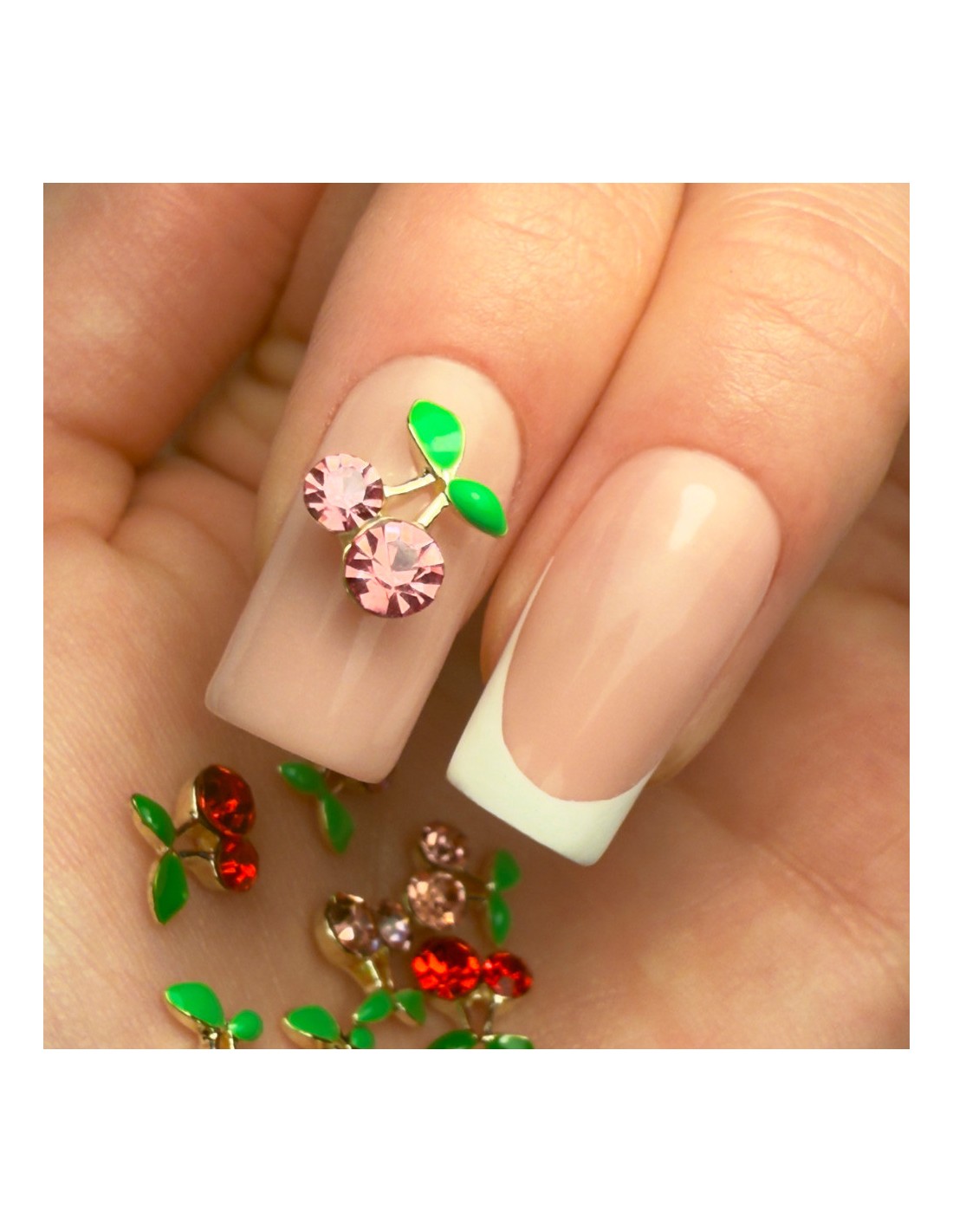 Gi neglene dine unik glans og farge! Disse kirsebærformede dekorasjonene med glitrende strass er den perfekte måten å gi friskhet, eleganse og sjarm til ethvert negledesign.
