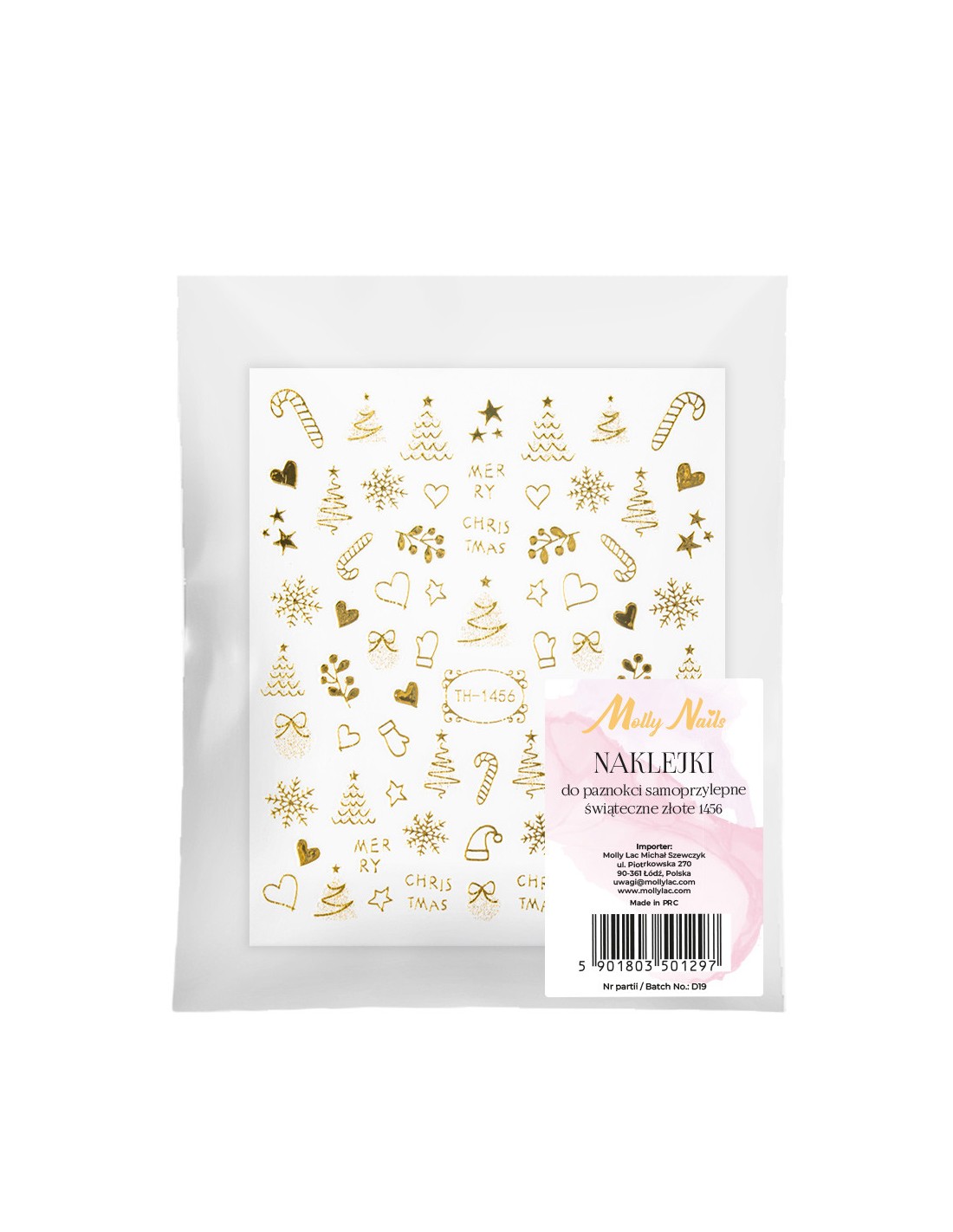 Selvklebende julegull negleklistremerker Molly Nails TH-1456