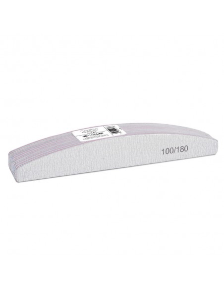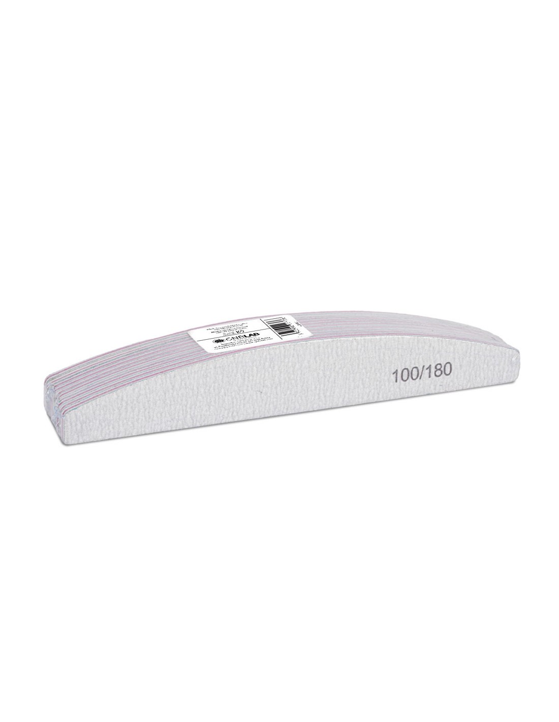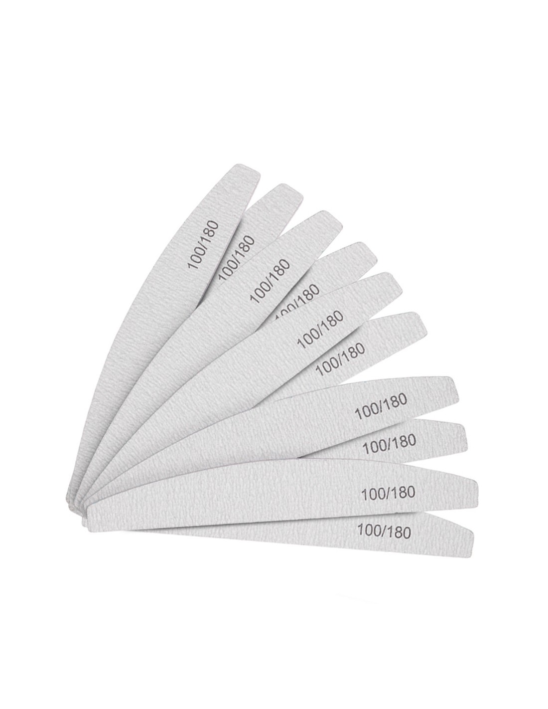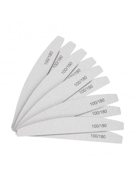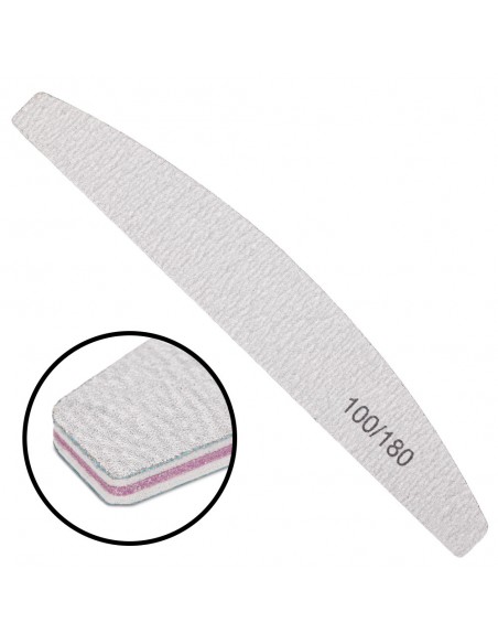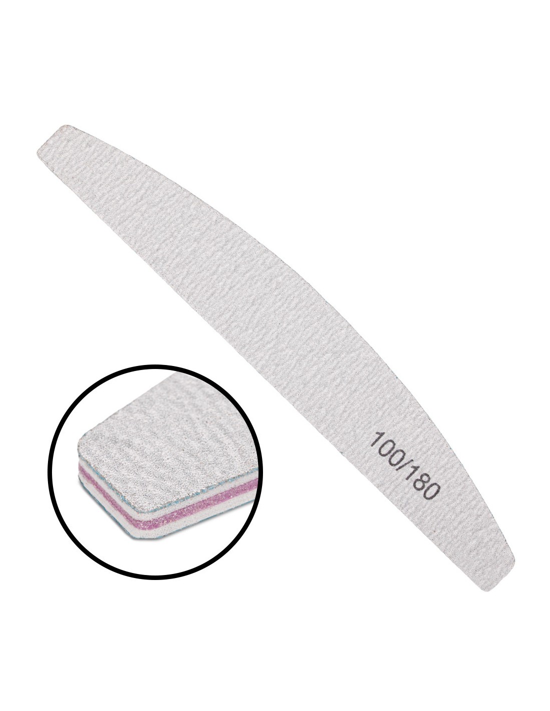 Denne engangs, universelle 100/180-korns, båtformede filen er egnet for både naturlige og forlengede negler. Den har usedvanlig slitesterke komponenter og lang levetid. Den har en hard kjerne som er svært motstandsdyktig mot brudd og deformasjon. Produktet glir jevnt over den filte overflaten uten å skade huden eller forårsake ubehag. Den høykvalitets kornen er slitesterk.