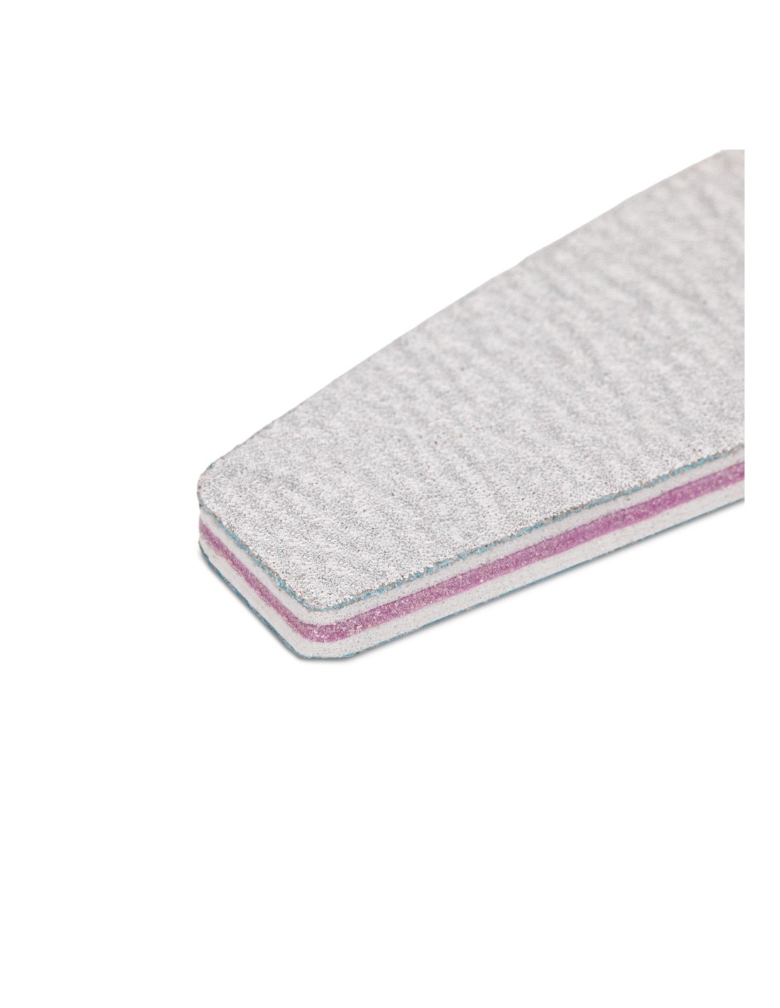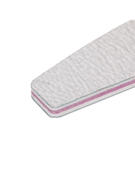To korn i én fil er en funksjonell løsning for behovene til neglesalonger. Den hardere kornen fjerner raskt og effektivt gel- og hybridlakk, mens den mykere siden er nyttig for å forme, matte og forme naturlige negler.