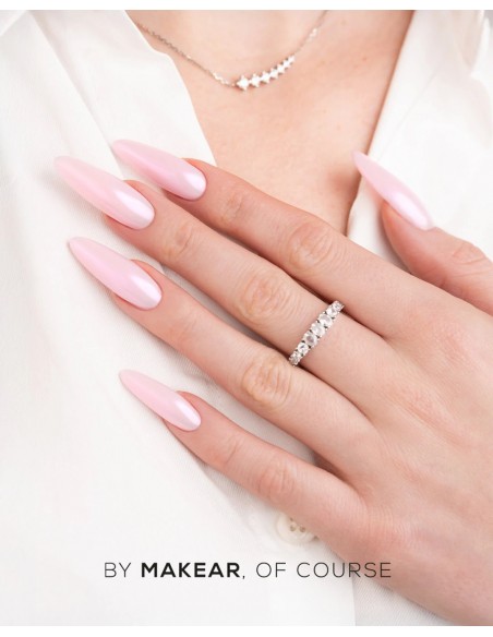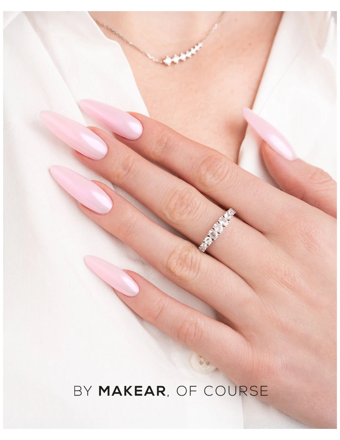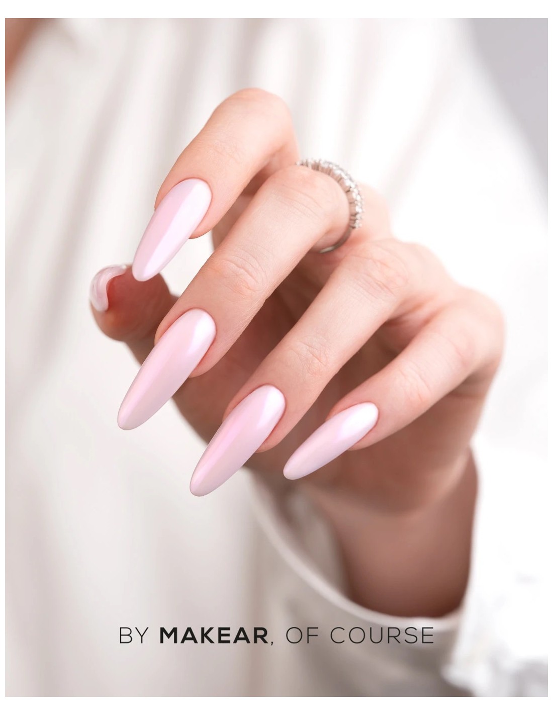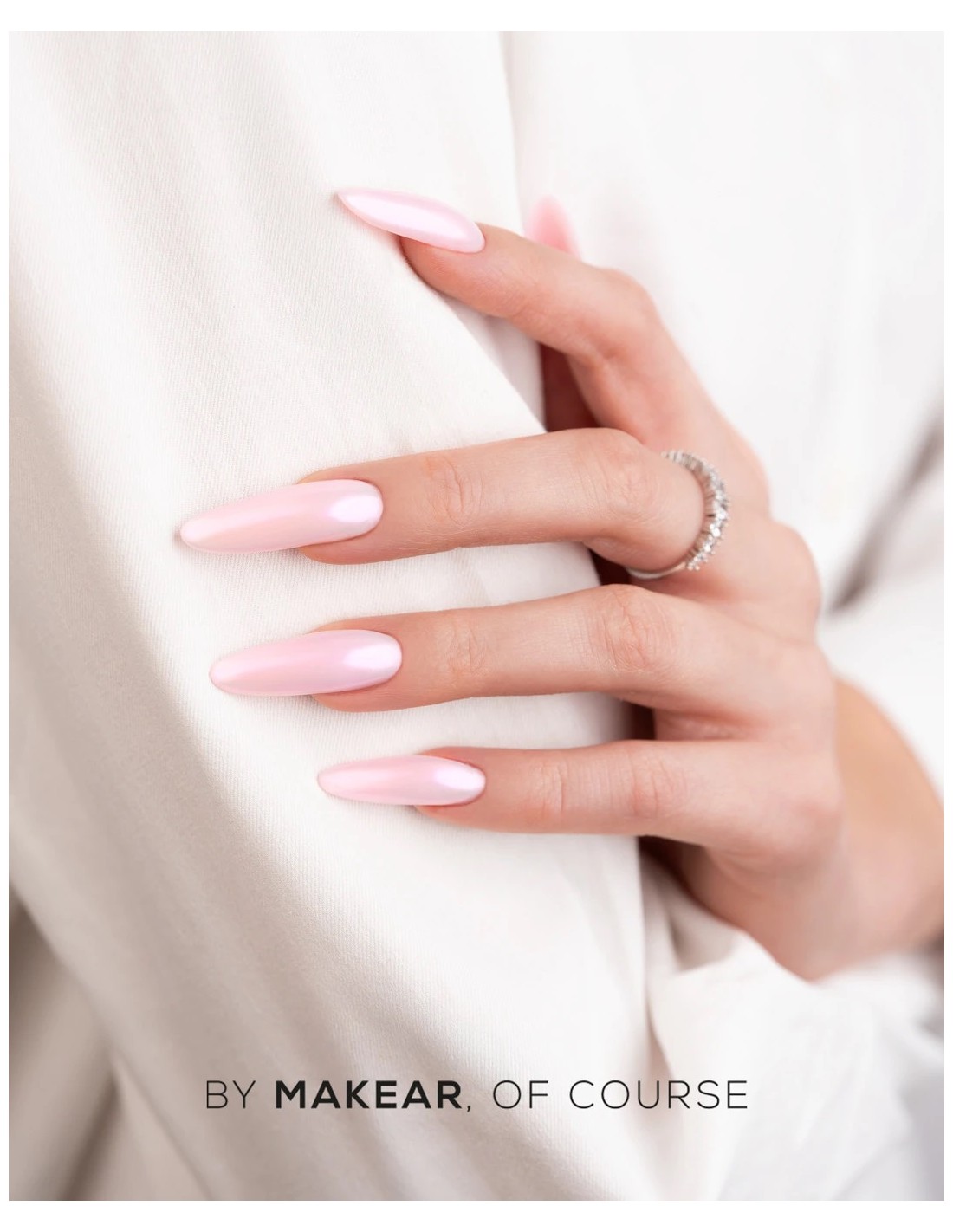 SFX Liquid Powder Hailey fra MAKEAR er et moderne alternativ til tradisjonelle løse pudder, perfekt tilpasset dagens negletrender. Takket være den flytende konsistensen og påføringen med børste, lar det deg oppnå en glasslignende overflate, subtil perlemorglød og intens glans – uten støv, søl eller produktsvinn.