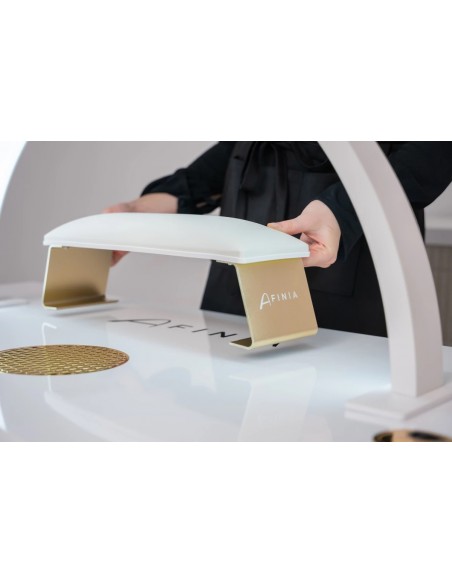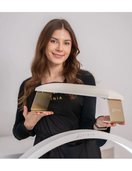 Et stilig og funksjonelt stativ, designet med tanke på komfort for både stylist og klient. Det ergonomiske designet gir komfortabel håndstøtte, noe som gjør neglestyling enklere. Laget av slitesterke materialer, er det motstandsdyktig mot aceton, varme og smuss, noe som sikrer langvarig bruk og enkelt vedlikehold.