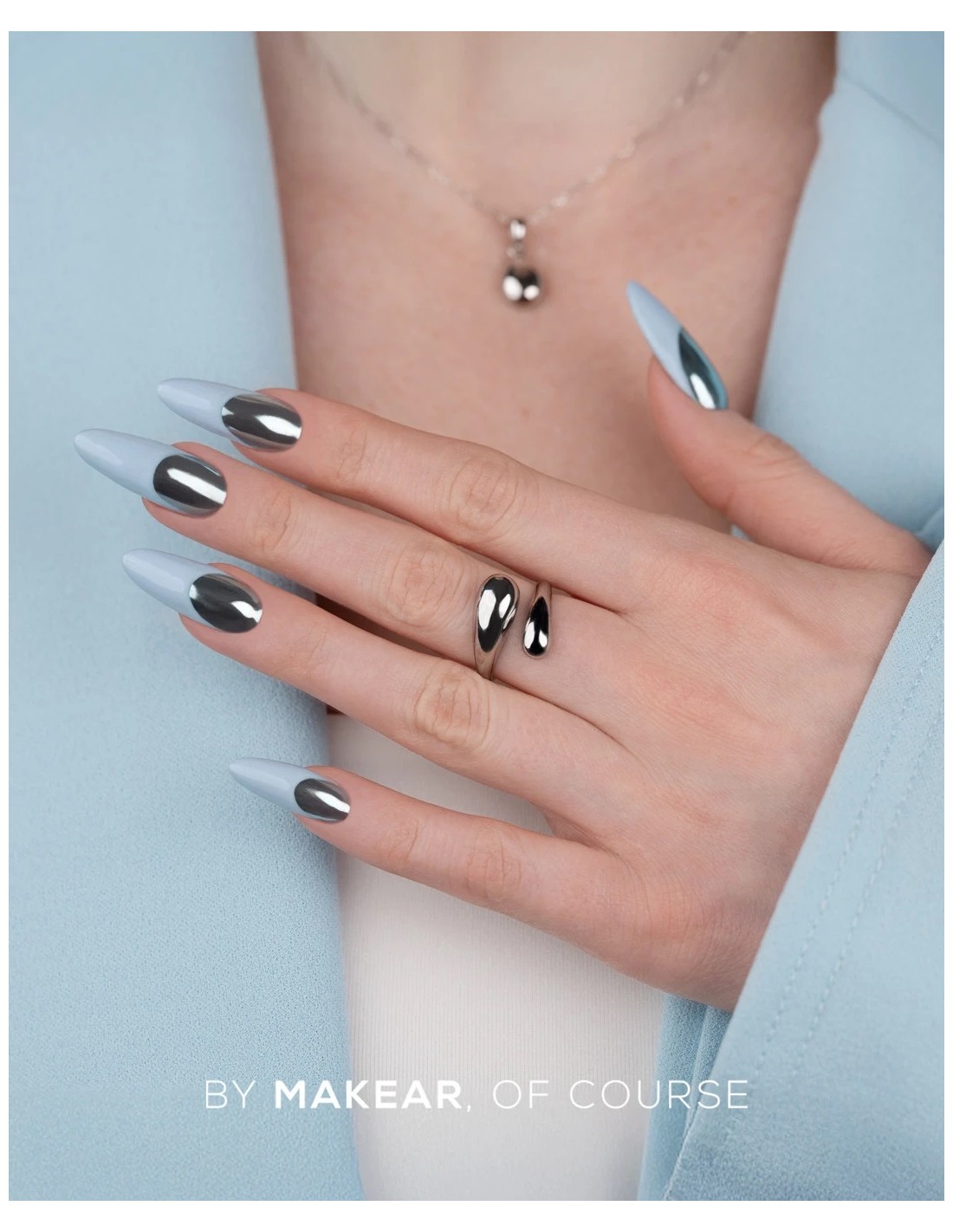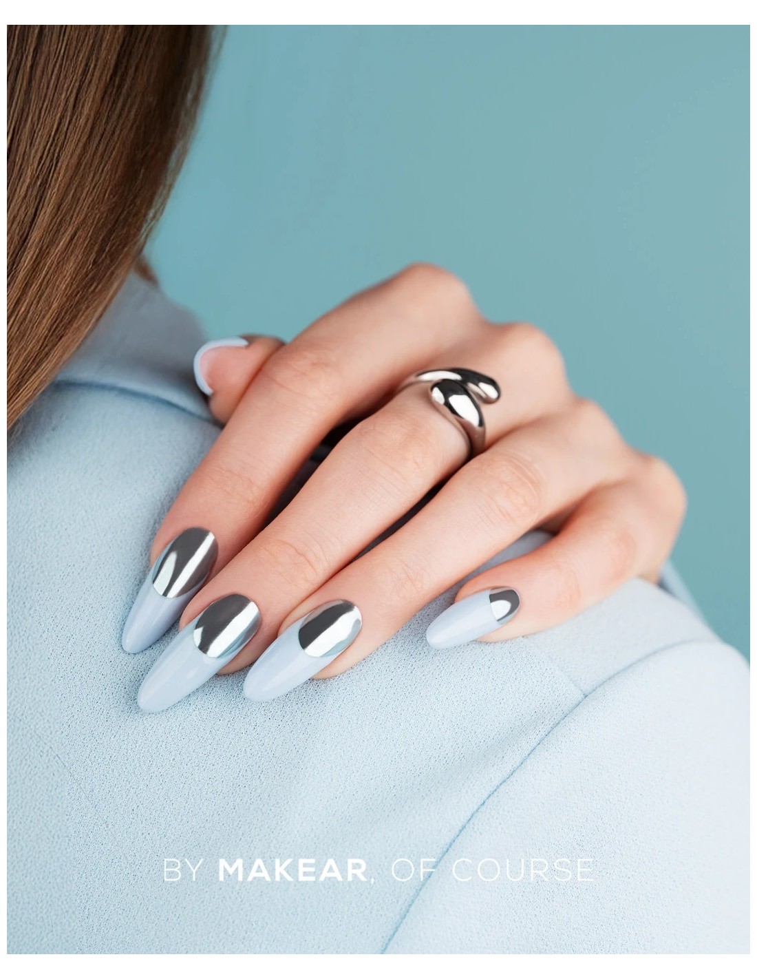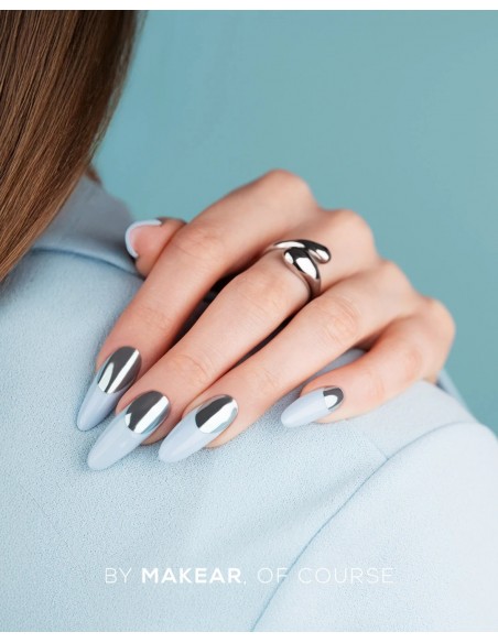SFX Liquid MAKEAR er et praktisk alternativ og sikrer renslighet og maksimal presisjon under neglestyling. Det lar deg oppnå en jevn, metallisk speileffekt uten søl på arbeidsplassen din.