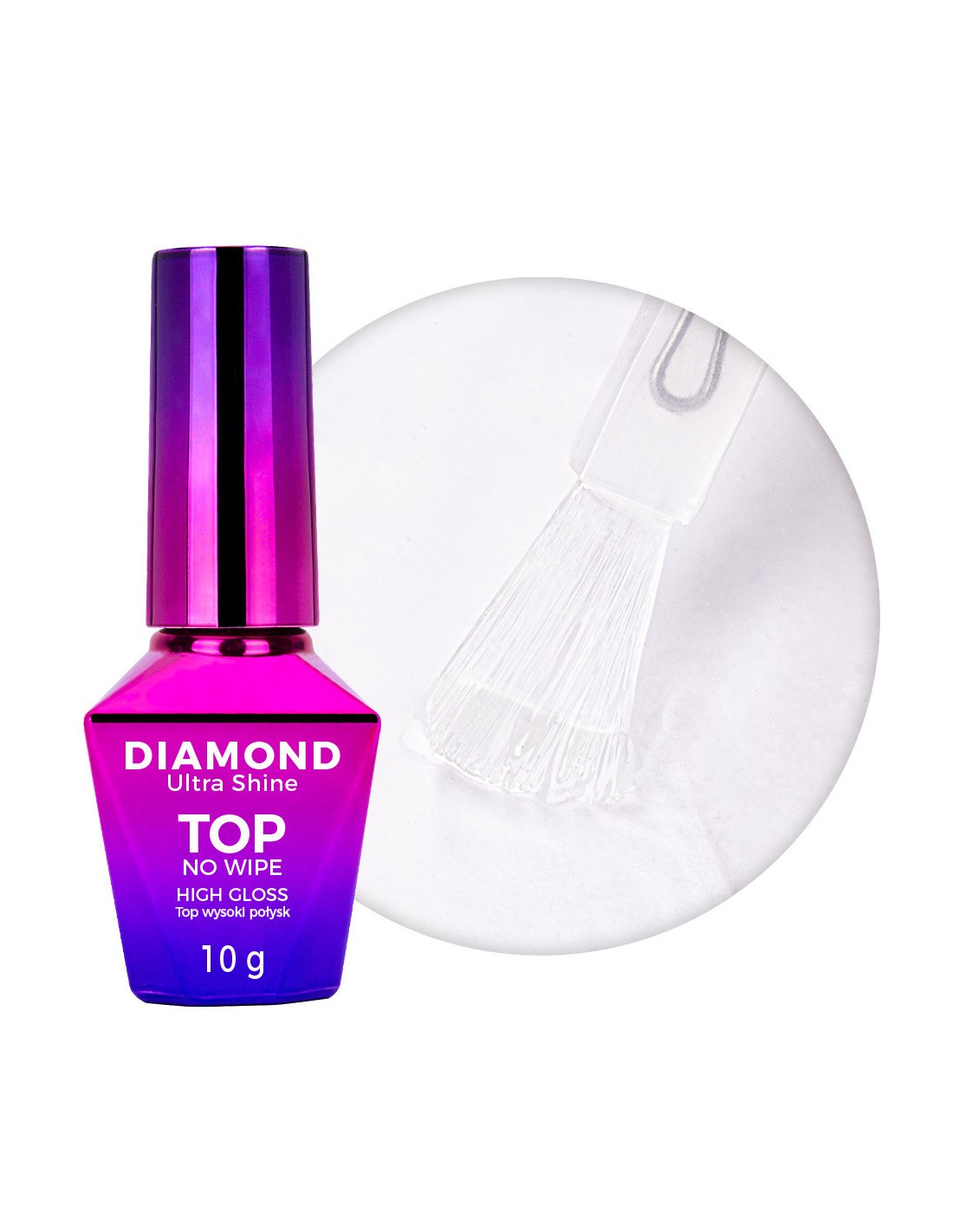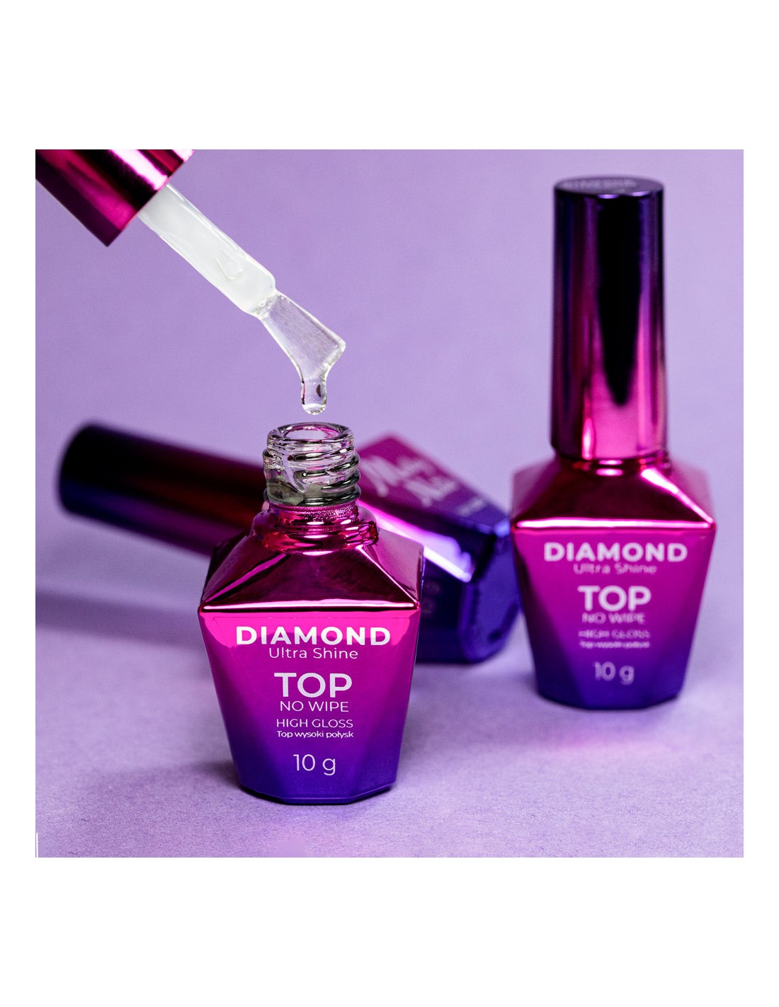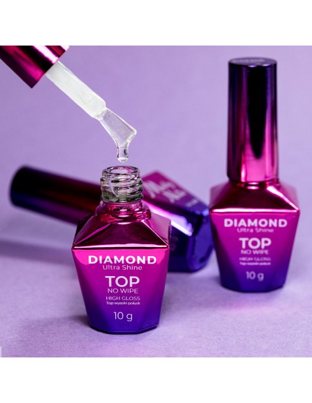 Molly Nails Diamond Ultra Shine High Gloss No-Wipe Top Coat er en profesjonell no-wipe top coat som skaper en diamantlignende høyglanseffekt.