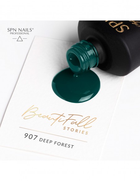 Mørkegrønn hybridlakk 907 Deep Forest fra Beautifall Stories SPN Nails-kolleksjonen