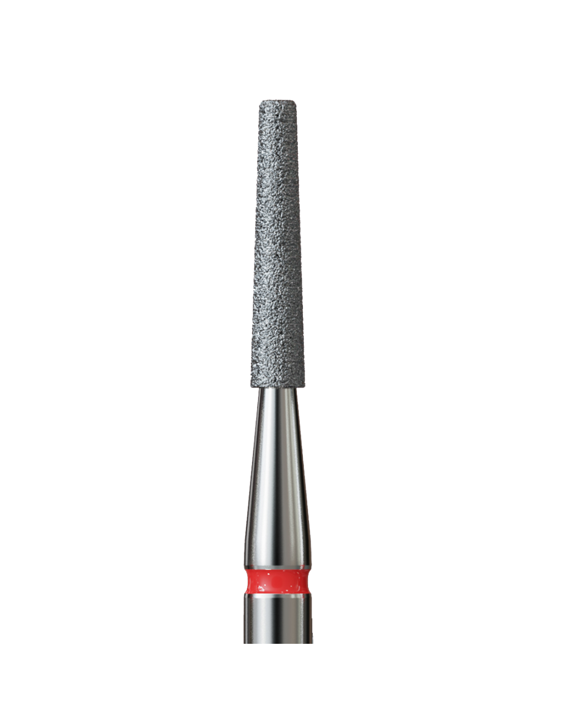Diamantfreser (173.514.018) gir, takket være sin skånsomhet, utrolig kontroll. Den avkortede kjegleformen og den røde stripen gjør den ideell for delikat forming av neglebånd og naturlige negleplater.
