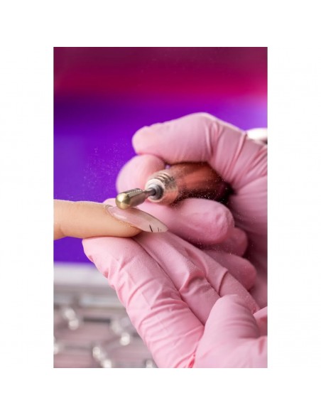 Karbidfreser (ZRN-147XUF HP.060) med avrundet, ikke-bearbeidende topp garanterer sikkert arbeid i neglefoldområdet. Sylinderformen og spesielle tverrsnitt gjør den ideell for å fjerne hybrid og gel på en naturlig plate.
