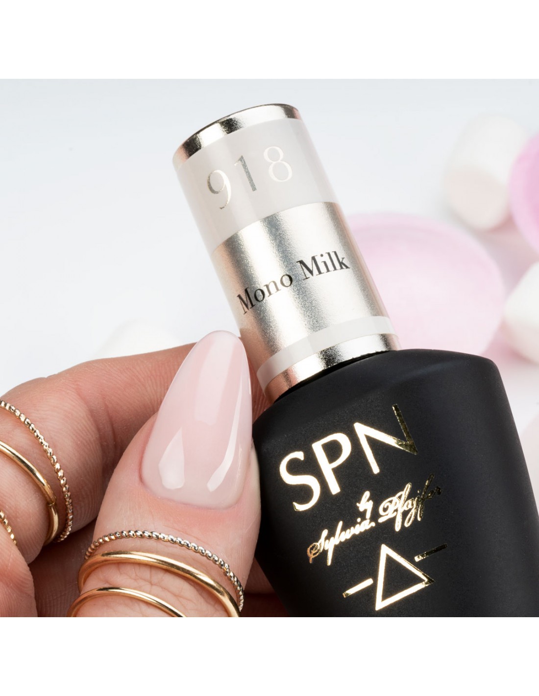 918 Mono Milk – en vakker, mest ettertraktet nyanse av vår-/sommersesongen. Den melkeaktige, delikate nyansen av 918 Mono Milk hybridbasen ligner kokosmelk. Et 2-i-1 produkt - base og farge, lukket i én SPN Nails glassflaske.