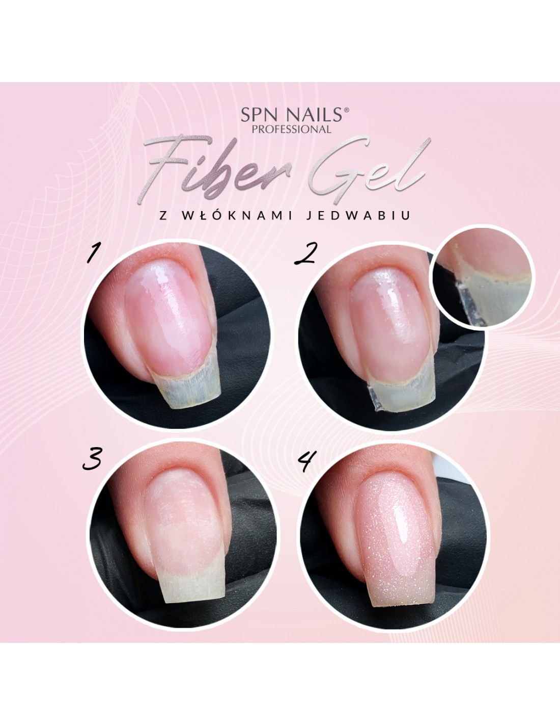Fiber Gel er beriket med superholdbare mikrofibre av fiberglass. Inneholder også naturlige, synlige, silkefibre, som danner et slags armeringsnett og binder seg godt til negleplaten.