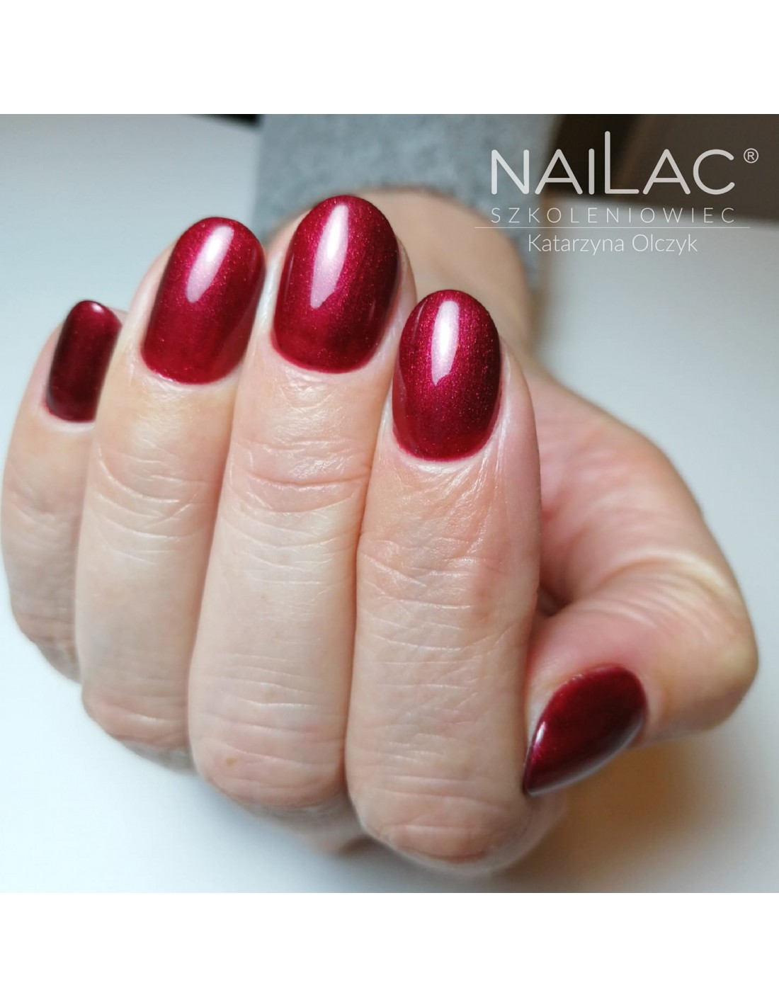 Høstens eleganse forbindes ofte med nyanser av burgunder og kirsebær, og når du tilsetter millioner av skimrende partikler, er det ikke bare elegant, men også slående. Det er farge #053 fra NaiLac – en dyp kirsebærfarge med magi av gnist.