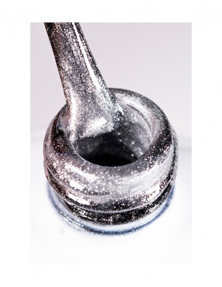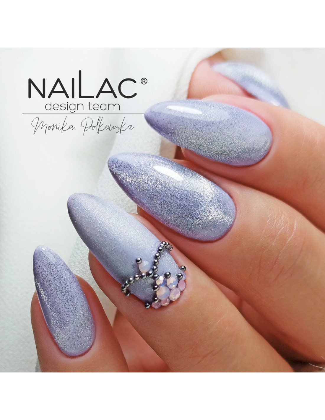 Hybridlakk med Cat Eye-effekten #409CE har den allerede kjente Cat Eye effekten, som er blendende morsom å jobbe med og en hel verden av muligheter. Sølvpartikler vil gi neglene dine en fantastisk karakter - beundre din nye mani laget med den nyeste Cat Eye-effekten fra NaiLac!