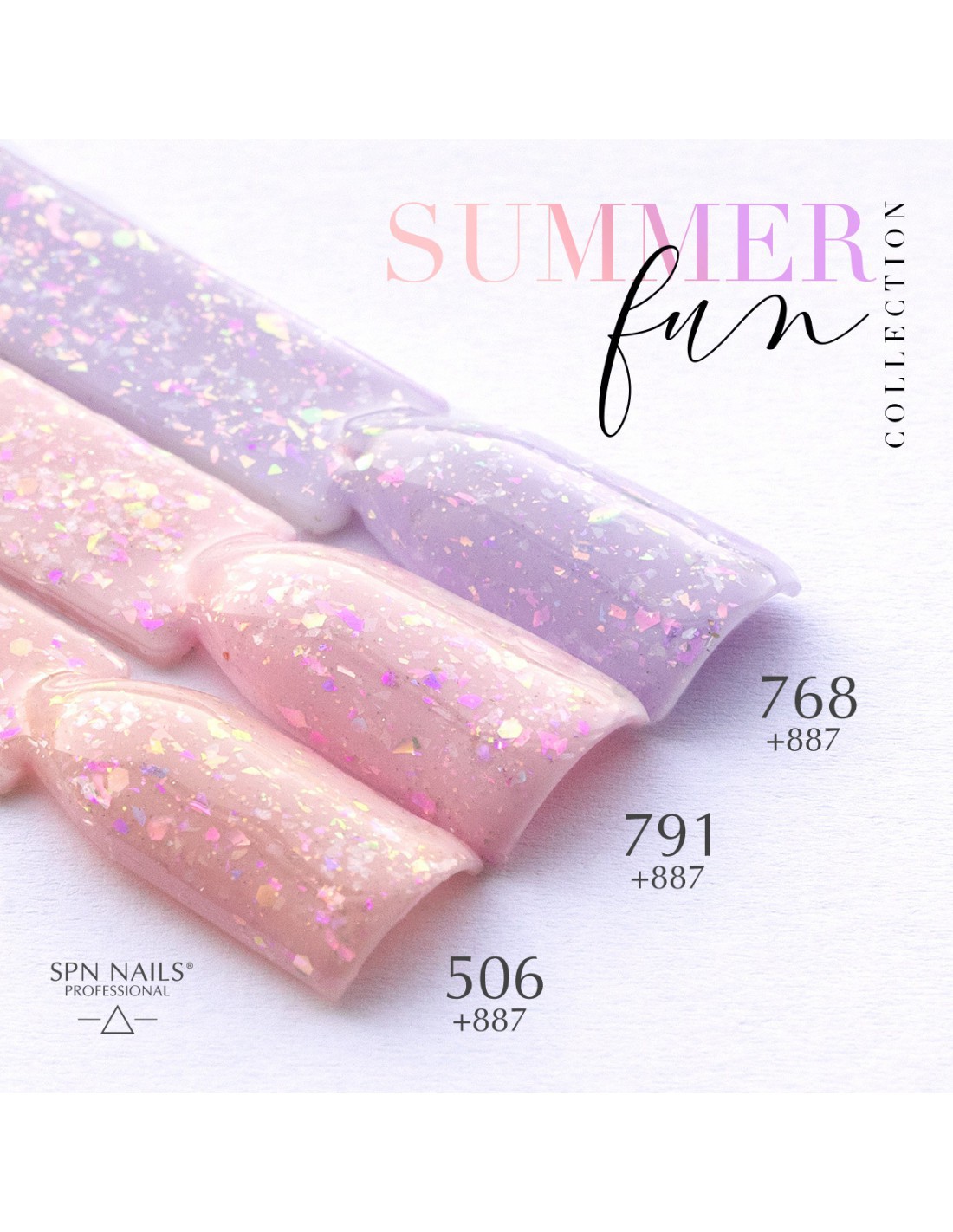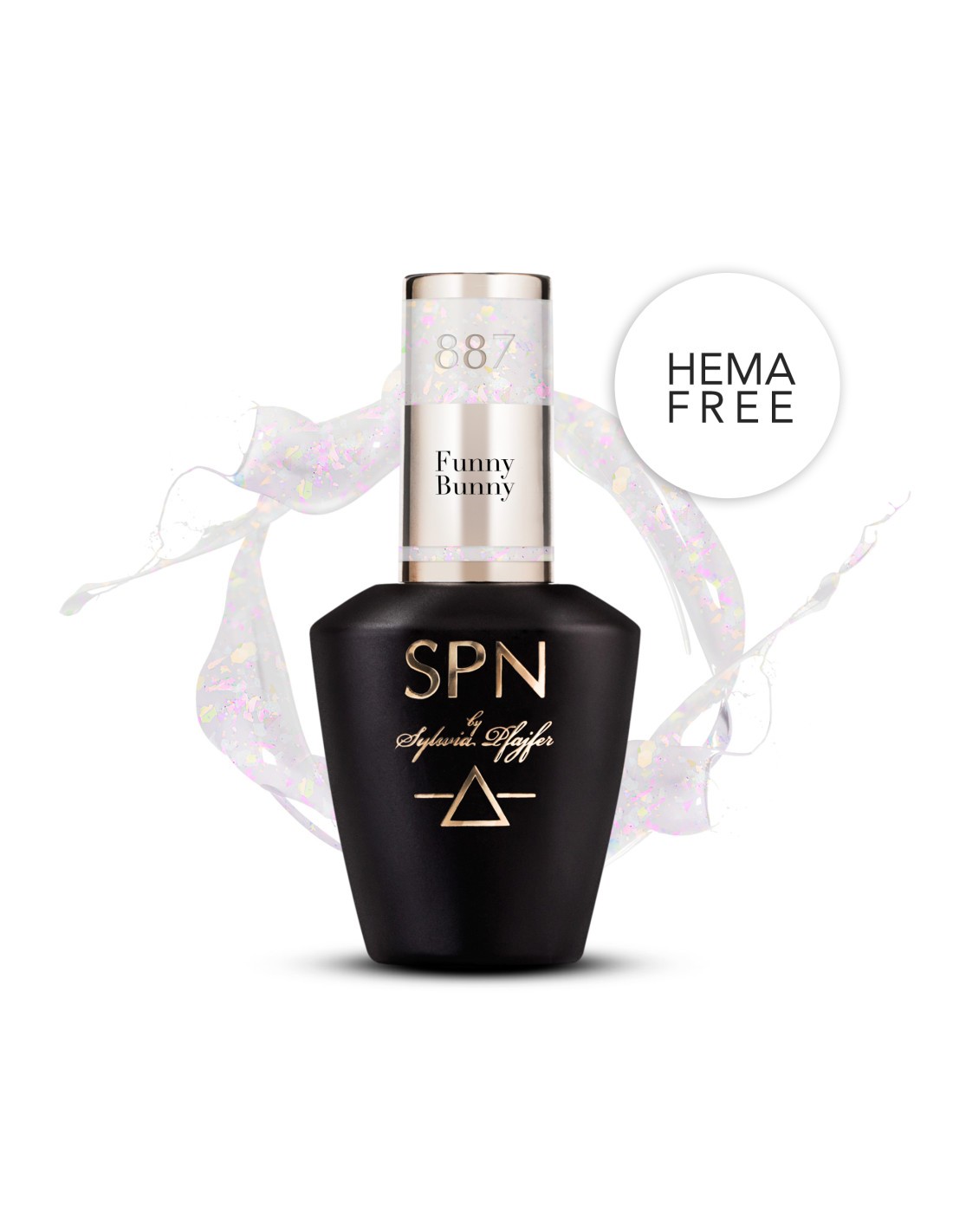 Gjennomsiktig hybrid neglelakk med iriserende partikler 887 Funny Bunny fra Summer Fun SPN Nails-kolleksjonen