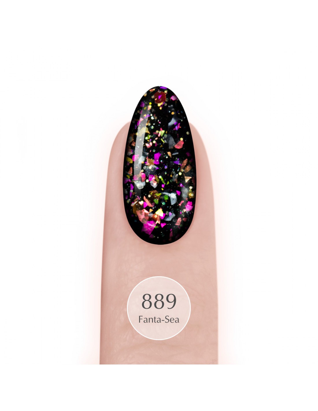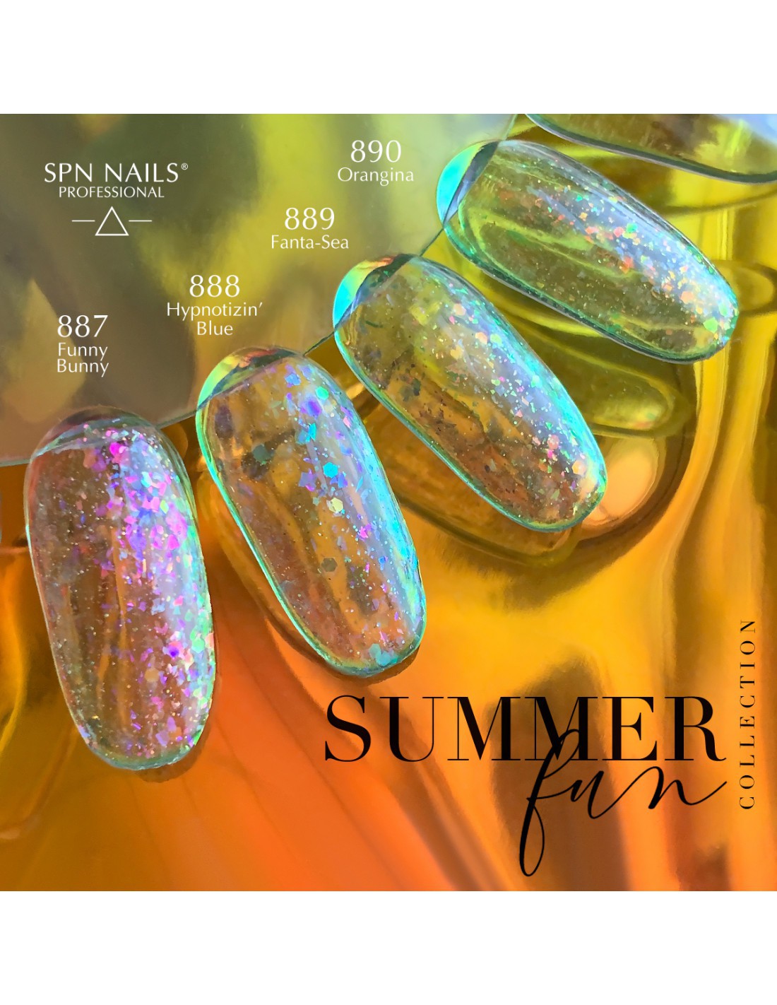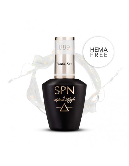 Transparent hybridlakk med opaliserende partikler 889 Fanta-Sea fra Summer Fun SPN Nails-kolleksjonen