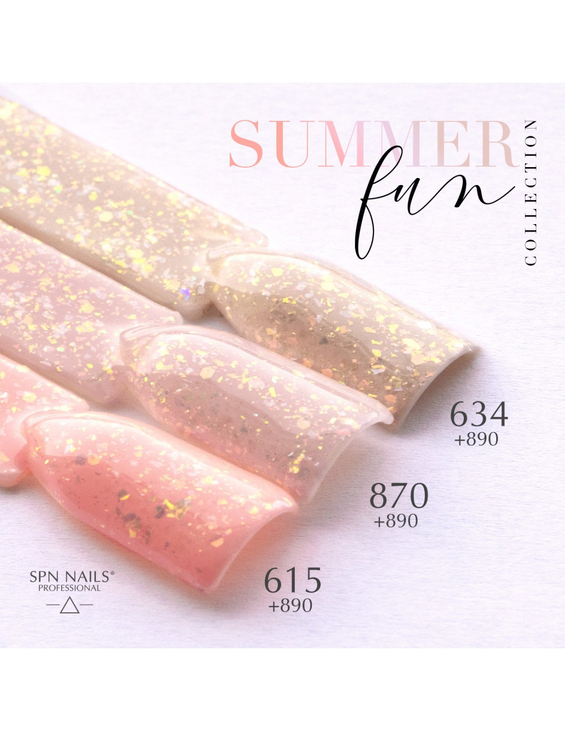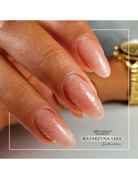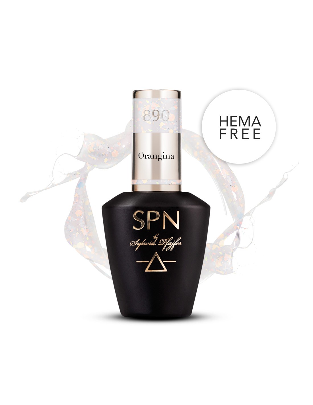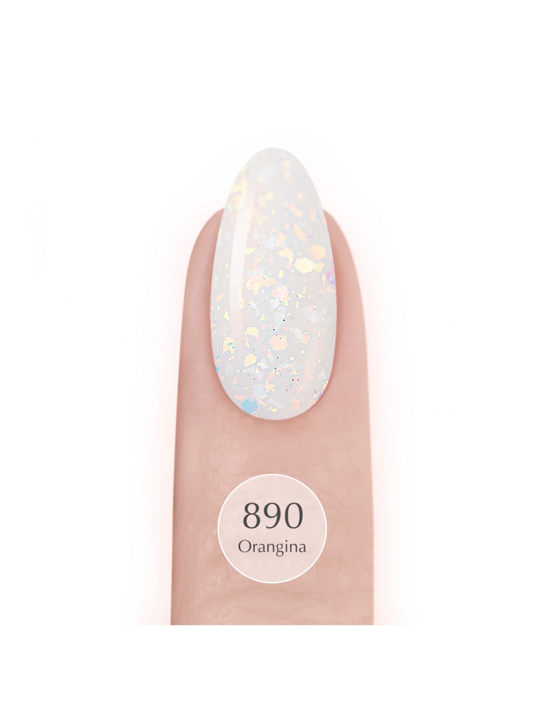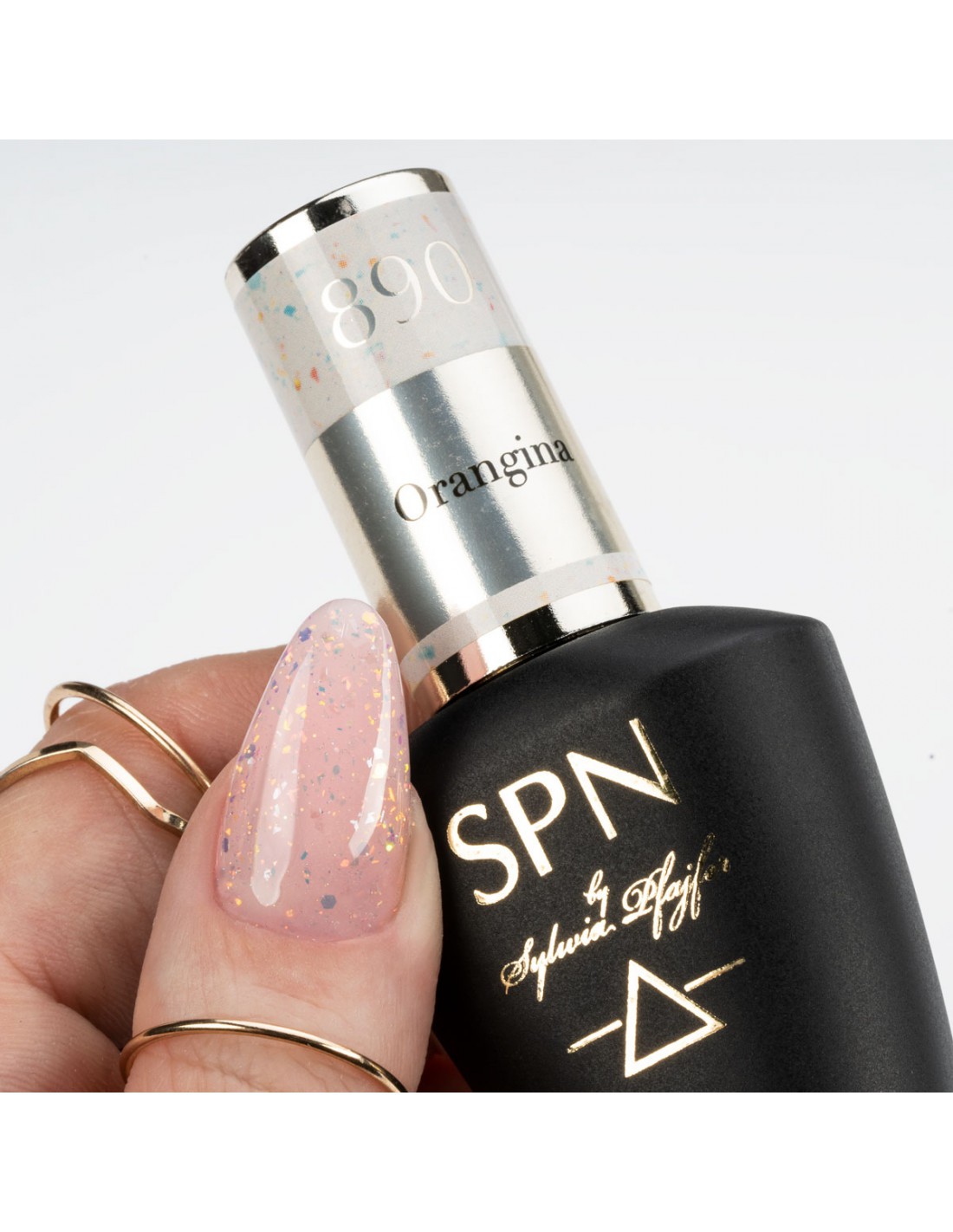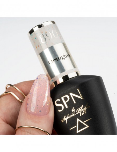 Transparent hybridlakk med opaliserende partikler 890 Orangina fra Summer Fun SPN Nails-kolleksjonen