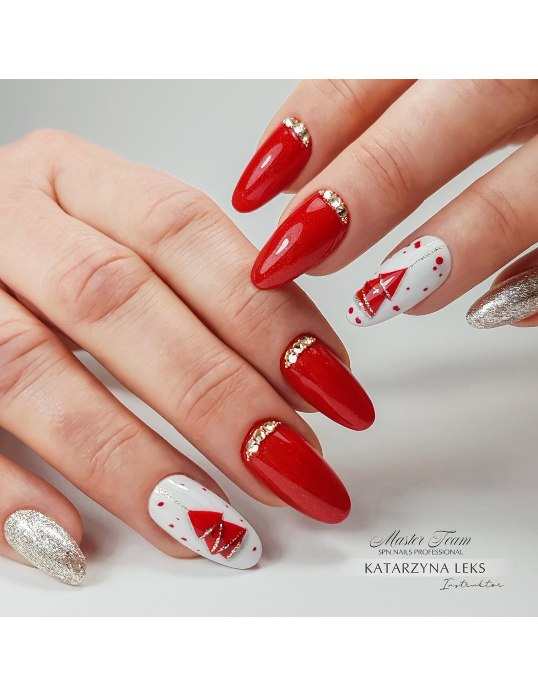 Rød hybridlakk med glitter 838 SMS at night SPN Nails